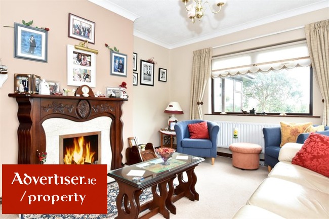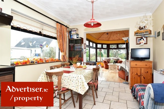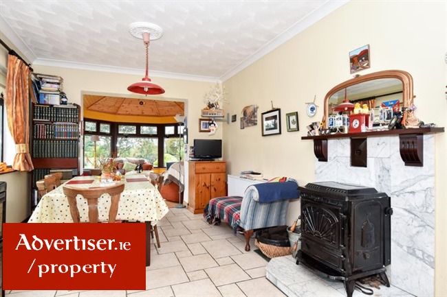 Open plan in style, tiled floors, feature fireplace with solid fuel stove, two large double glazed windows overlooking rear of property, feature ceiling coving, cornessing around lights, Archway leading to sun room.